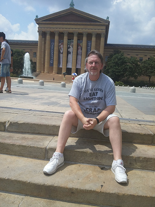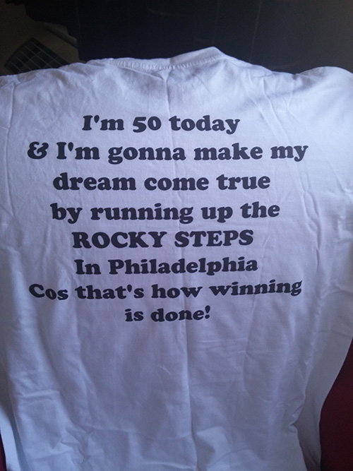 It’s now July 25th 2015, and after years of saving for this landmark birthday (my 50th) I’m running up the ‘Rocky steps’ in Philadelphia after having an amazing Rocky Tour with Mike Kunda (please listen to our shows with him and take his tour whenever you’re in Philly) and then going to the Victor Café (‘Adrian’s’ in Rocky Balboa and the Creed movies) for a birthday meal.