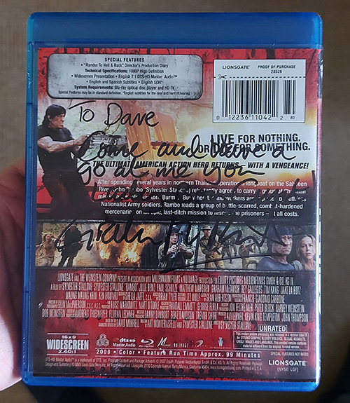 Not only did he pose for many photo’s with me, but he also signed my Rambo blu-ray with my favourite line of his from the movie; “Come and have a go at me you lady boy c**t”.