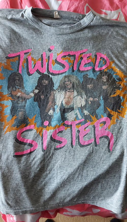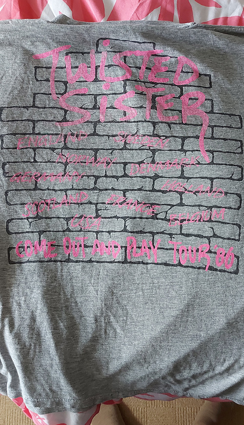 Here’s my 1986 Twisted Sister “Come Out and Play” Tour T-shirt that I show to Thom as we record (click to enlarge):